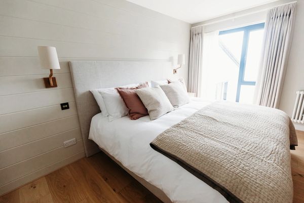 Indulge in a haven of luxury in the Oystercatcher, our master bedroom, where unparalleled luxury awaits. A super king-sized bed and lavish private ensuite bathroom sets the stage for a truly indulgent experience—two expansive windows frame panoramic views of the river Fal, creating an enchanting atmosphere.